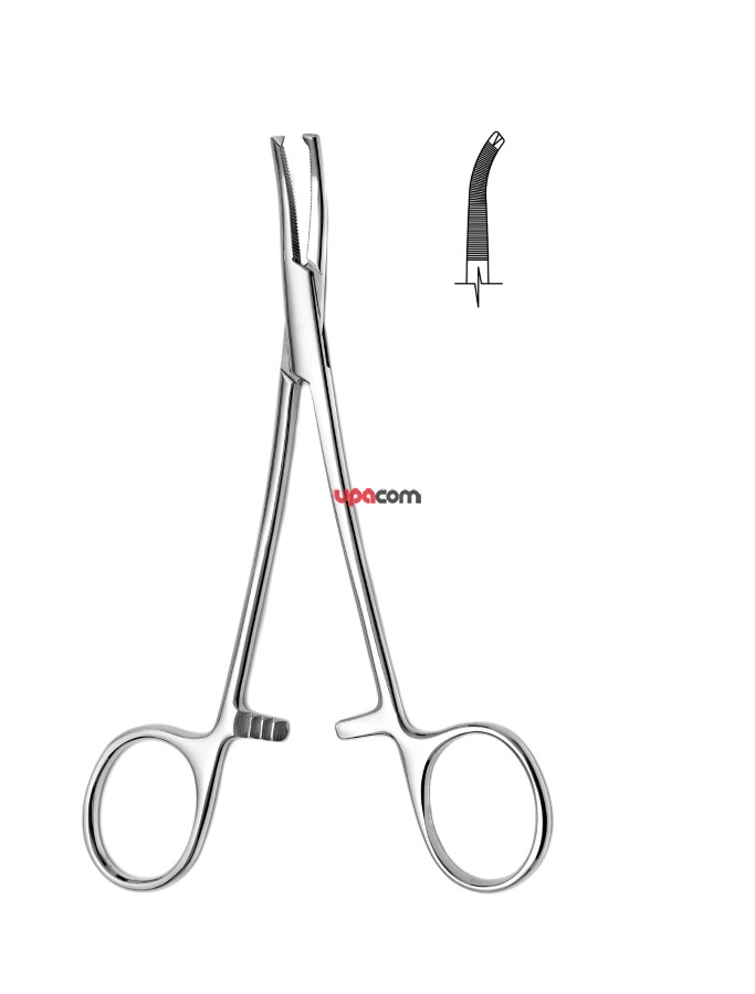 Hemostatic forceps, curved, serrated, 1×2-teeth, size №1, 140 mm