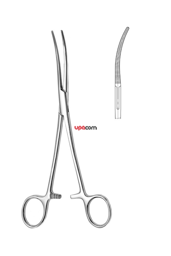 Hemostatic forceps, serrated, curved, № 2, 240 mm